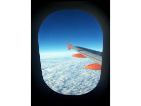 Křídlo letadla vyfocené během letu z Bratislavy do Berlína