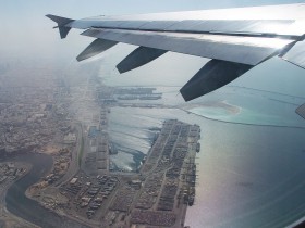 Pohled na přístav krátce po startu z mezinárodního letiště v Dubaji