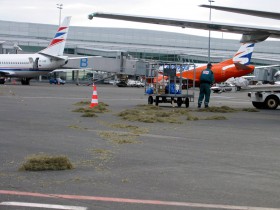 Při pojíždění na start rozmetala Mrija na ploše "nového" letiště posekanou trávu do úctyhodné vzdálenosti