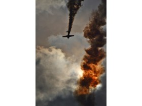 Akrobacie Extry na Aviatické pouti v Pardubicích (zbarvení fotografie je dáno focením proti slunci).