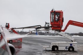 Odmrazovanie po nórsky - po dve autá na každé krídlo a dve ďalšie na výškovku.