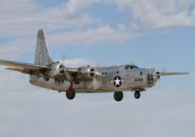 4Y-2 LLC. Letoun prochází intenzivní úpravou do "originálního" stavu, kdy létal pro United States Coast Guard. Foto je z prvního letu po odstranění laku.