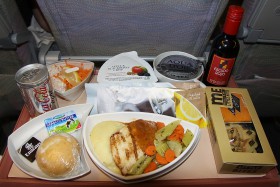 Večeře v ekonomické třídě na lince Praha - Dubaj.
