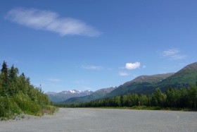 Tady se musí přistávat! Štěrková dráha (4/22) o délce 671 m obklopená horami a lesy, jakých jsou na Aljašce stovky. Veřejné letiště na poloostrově Kenai.