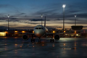 Pojíždění na pozici po příletu pravidelné večerní linky z Říma.