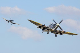 Spitfire PL344 dotáčí na finále dráhy 24. V pozadí je Spitfire TD248.