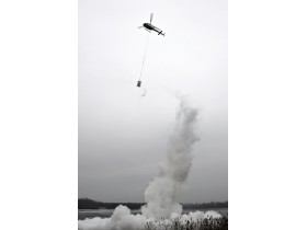 22. 11. 2018: Pokračující práce na vápnění rybníku Buňkov v Břehách, nedaleko Přelouče. Důvodem je sanace vypuštěného rybníku z důvodu nákazy ryb. Helikoptéra přepravuje násypku s cca 800 kg nákladem nehašeného vápna. Ta je umístěna na delším laně, z důvodu výhodnější obsluhy a snížení prašnosti, zejména pro operátory na zemi, kteří provádějí plnění násypek.