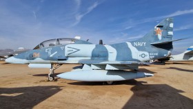 Tento A-4 muzea byl jedním z posledních aktivních Skyhawků v provozu. Její poslední let byl 24. dubna 2003 z NAS Roosevelt Roads, VC-8, Portoriko, do March Field Air Museum. Skyhawk, který byl přidělen do školy Top Gun amerického námořnictva jako „Agresor“, hrál důležitou roli. Velikostí a výkonem podobný mnoha letadlům sovětského bloku, A-4 simuloval potenciální nepřátelská letadla v cvičných cvičeních.