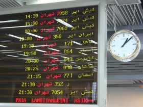 26.11.2004 14:30 Teheran 7058 Kish Air 15:00 Teheran 7024 Kish Air 18:00 Shiraz 7060 Kish Air 19:00 Teheran 350 Iran Air 19:30 Teheran 171 Saha 19:50 Teheran 864 Aseman 20:00 Teheran 043 Caspian 20:25 Teheran 090 Mahan 21:15 Teheran 77 Aseman 21:30 Teheran 352 Iran Air (on the table displayed only R) 21:30 Teheran 7054 Kish Air