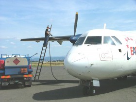 There is not very usual to see fuelling ATR aircraft from the top of the wings...