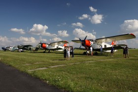 AN2 planes grouped together just before flight to Gera (AN2 planes meeting)