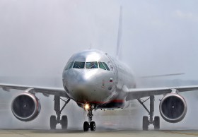 02.06. SkyTeam day at Ferenc Liszt Airport. Arrival of the first SkyTeam member airline of the day, seen here under the water cannon salute.
