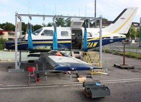 Aircraft damaged 8.3.2011 in runway excursion on landing. This photo was taken during dismantling wing to fit ground transport to Czech Republic in June 2012. Repair works finished a year later and plane returned into duty as OK-MER.