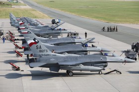 08.09. American F-16 on Squadron exchange manoeuvres in Caslav, Czech Republic.