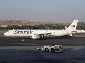 04.07. Promoting Spanair website is seen here slowing down on RWY 24L.
