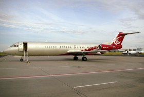 Ex MJet GmbH Fokker 100 for Slovak Gvmt on maintenance at Bratislava airport.