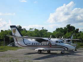 C/n 882030, v pozadí třetí L410 XA-TAU, poškozený během hurikánu Wilma
