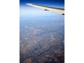 19.10. Portugalské priehrady Fratel (dolu) a Pracana (hore). Za nami je zhruba 11 hodín letu a do pristátia v Madride nám ostáva asi polhodinka (LA2706 Lima - Madrid).