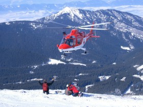 Záchrana zraněného lyžaře - přetrhané vazy v koleni. Nízké Tatry, Chopok.