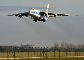 Při silném západním větru se odlepil Ruslan ani ne z půlky dráhy, čeká ho let do Francie.