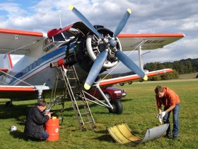 13.10. Posádka výsadkového lietadla z Letiska Praha-Letňany sa pripravuje na jeden z posledných letových dní v tomto roku na Prachaticku, kde uskutočnila veľké množstvo letov pre milovníkov parašutizmu.