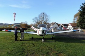 Tankování po letu (Aeroklub Klatovy).