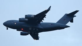 Premiérové přistání C-17 z 99 squadrony RAF dnes v podvečer v Pardubicích.