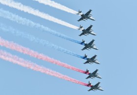 Závěr letecké části přehlídky v Moskvě
