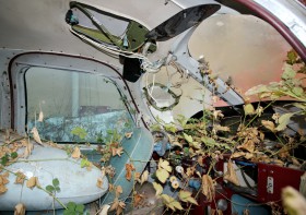 Kokpit sanitní verze L200D-Morava registrace SP-NXH prorostlý vegetací. Zajímavostí stroje je pouze jednostranné řízení, protože stroj byl uzpůsoben pro přepravu lůžka s raněným/nemocným. Dnes je v soukromých rukách.