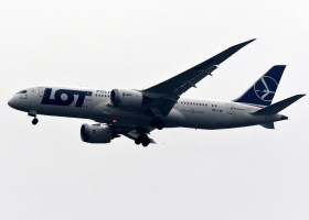 Dreamliner se vynořil z nizkých mraků nad Prahou jako změna typu letadla na lince z Waršavy.