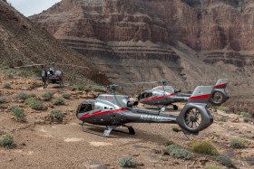 Maverick Helicopters je jediná společnost, která má povoleno již 23 let přistávat v Grand Canyonu, konkrétně v tomto případě v jeho západní části - West Rim, při letech z Las Vegas. Toto místo se nalézá jen asi 230m nad hladinou Colorada a asi 6km východně a 900m pod úrovní letiště Grand Canyon West nedaleko vyhlídky s proskleným chodníkem Grand Canyon Skywalk / Eagle point.