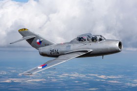 Fotolet s Mig15 UTI Czech Flying Legends nedaleko Hradce Králové. Foceno z Cessna Caravan.