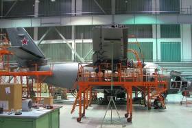 Pracovna operátora radaru a zbraňových systémů přepadového stíhače MiG-31BS. Vybavení kabiny je původní ze začátku 80.let, nové skleněné kokpity jsou záležitostí právě probíhající modernizace na standard MiG-31BM.