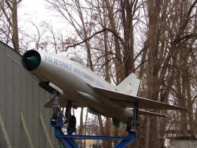 Newly installed MIG21 in front of exhibition hangar Prague - Kbely museum