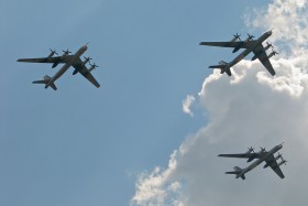 12.08. A flyby of three Tu-95MS was a part of 100 years of Russian Air Force celebrations airshow. The tail numbers are 10, 16, 21, all reds or RF-94128, RF-94124 and RF-94121.