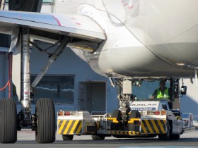 lifted off the ground by the towbar-less tug.
