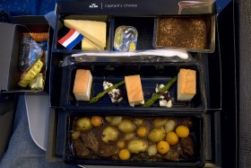 Captain´s Choice a la Carte meal for additional fee on Amsterdam - Lima flight. I got mini-custs with fish and beef with potatoes. Better choice than usual "chicken or pasta" choice.