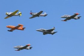 55° Anniversario Frecce Tricolori - Formazione Legend. Aermacchi T-346A together with MB-339CD (MM55080), MB-339A (MM54516), MB-326E (I-RVEG), Fiat G-59B (I-MRSV) and T-6G Texan (I-SSEP).