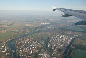 Pohled na Kralupy nad Vltavou během příblížení k dráze 24