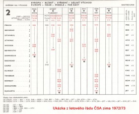 Ukázka z letového řádu ČSA zima 1972/3