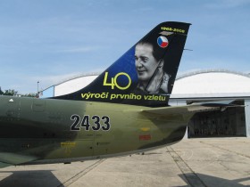 Levá strana SOP s portrétem šéfkonstruktéra letounu L-39 p. Jan Vlčka, připomínající 40. výročí vzletu prvního prototypu.