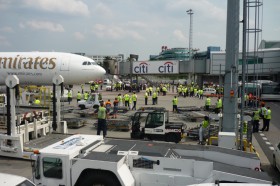 01.07. Na první přílet Emirates se ke stojánce č. 1 přišlo podívat mnoho zaměstnanců, novinářů a dalších přizvaných hostí...