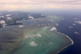 Markantní korálový šelf při přiblížení do Nadi, foceno z A320 Jetstar Airways na lince JQ119.