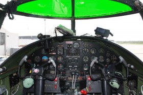 Pohled do kokpitu letounu B-25 při letecké show na letišti Springfield (American Airpower Heritage Fly Museum)