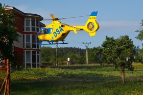 Vzlet ze stísněného prostoru ze zahrady domova důchodců v Polici nad Metují