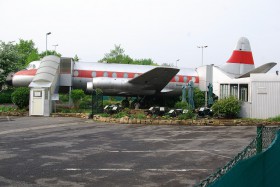 V letadle je umístěna řecká restaurace a stojí na okraji Hannoveru