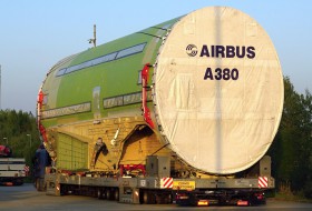 Střední část trupu A 380. Vyrobená v Hamburku, napřed lodí, následně po silnici dopravovaná do Toulouse. Výrobní číslo 085, po dokončení bude létat u Singapore Airlines jako 9V-SKR.