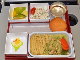 Spagety/nudle vypadaji celkem dobre, limetka vypada, ze uz toho mam celkem dost nalitano a celkove mi to prijde pomerne malo, na tak dlouhy let :)