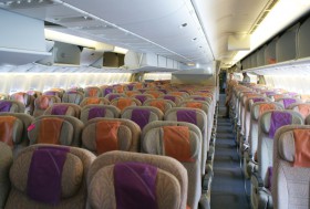 Ekonomická třída B777-300 krátce po přistání linky EK 544 z Dubaje do Chennai, dříve označovaného jako Madras. Posádka přihlíží mému počínání s fotoaparátem a trochu nechápe... :-)
