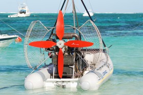Návaznost na fotografii z 12.11.2012. Detail motoru létajícícho člunu Lomac Nautica. Motor o výkonu 52 Hp vynese náklad max. 230 kg do výše 7000 stop (myslím, že by potřeboval vyměnit chladič, působení mořské slané vody na něj je evidentní). Snimek porizen na Bavaro Beach, Dominikan Republic.